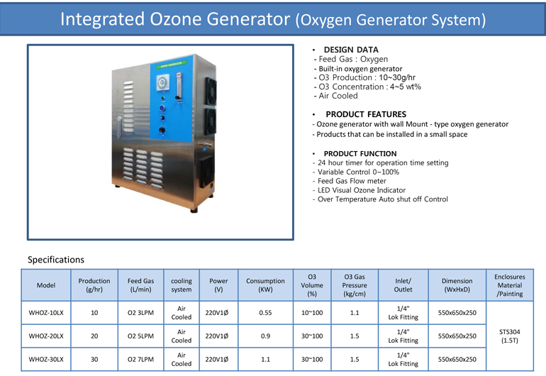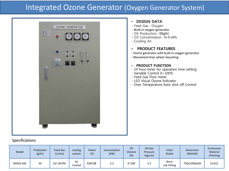 Bao gồm: Máy nén khí không dầu, Máy tạo khí Ozone, Máy tạo khí Oxy kết hợp với nhau thành một hệ thống độc lập vì thế khi hoạt động chỉ cần cấp nguồn.